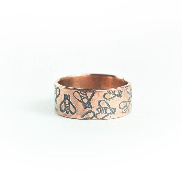 This ring is the bees knees! It's fun and stylish and stamped with a lovely bee pattern. You can feel confident and stand out from the crowd, show all your friends what the buzz is about.