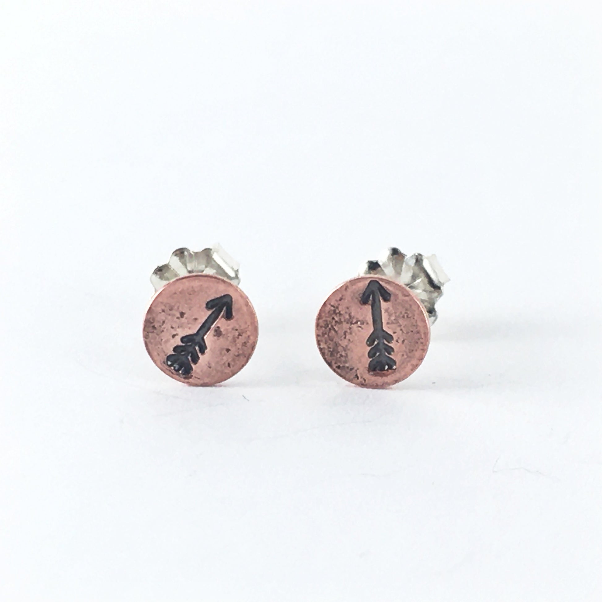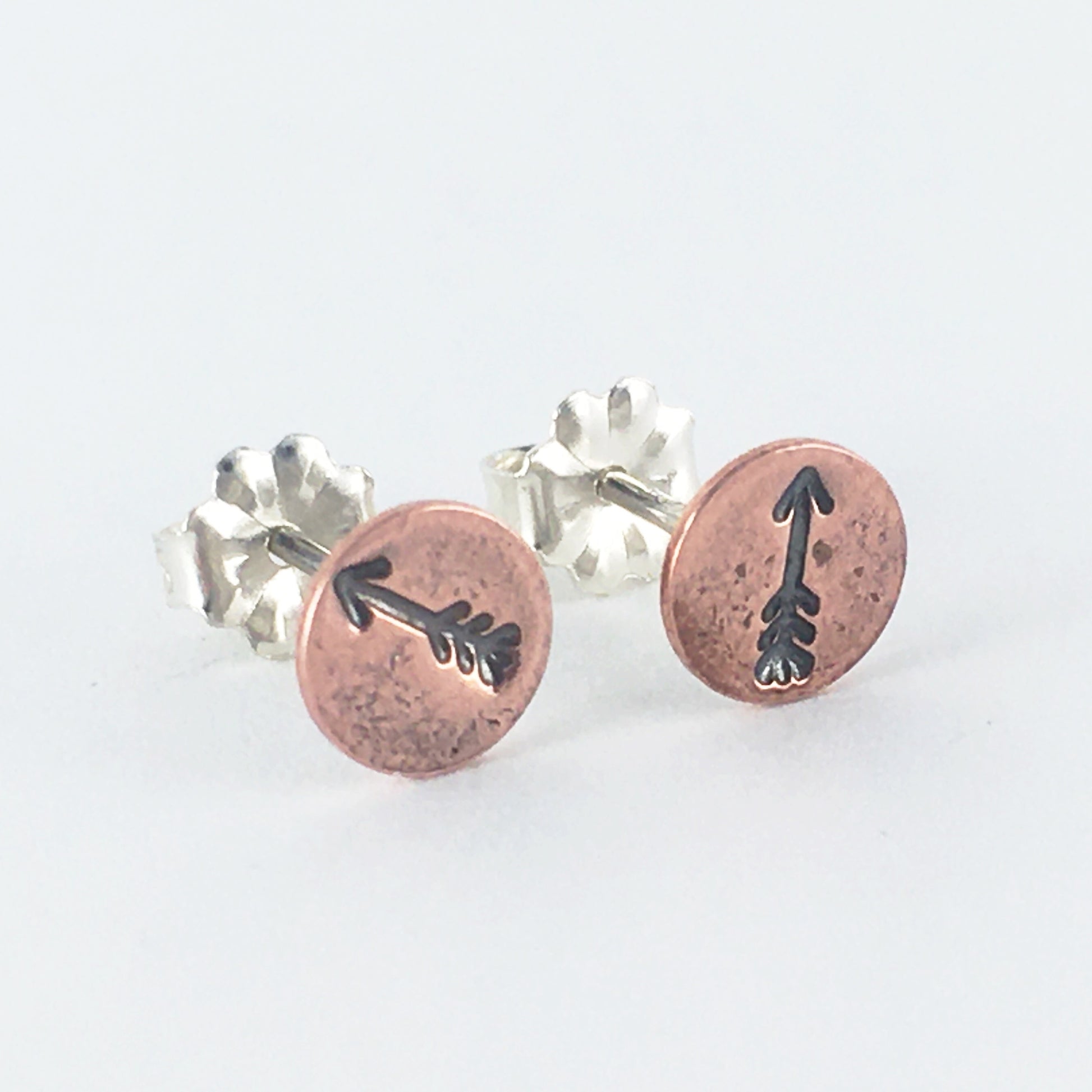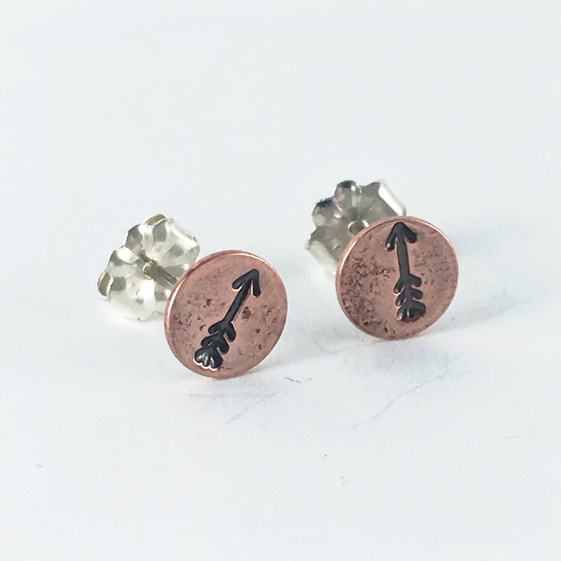 These arrow studs will point the way and will be an everyday favorite. They're copper with sterling silver posts and backs, hand stamped with my arrow tool. They're antiqued and hand polished one by one! Aim at the center and your arrow is sure to land where you point it.