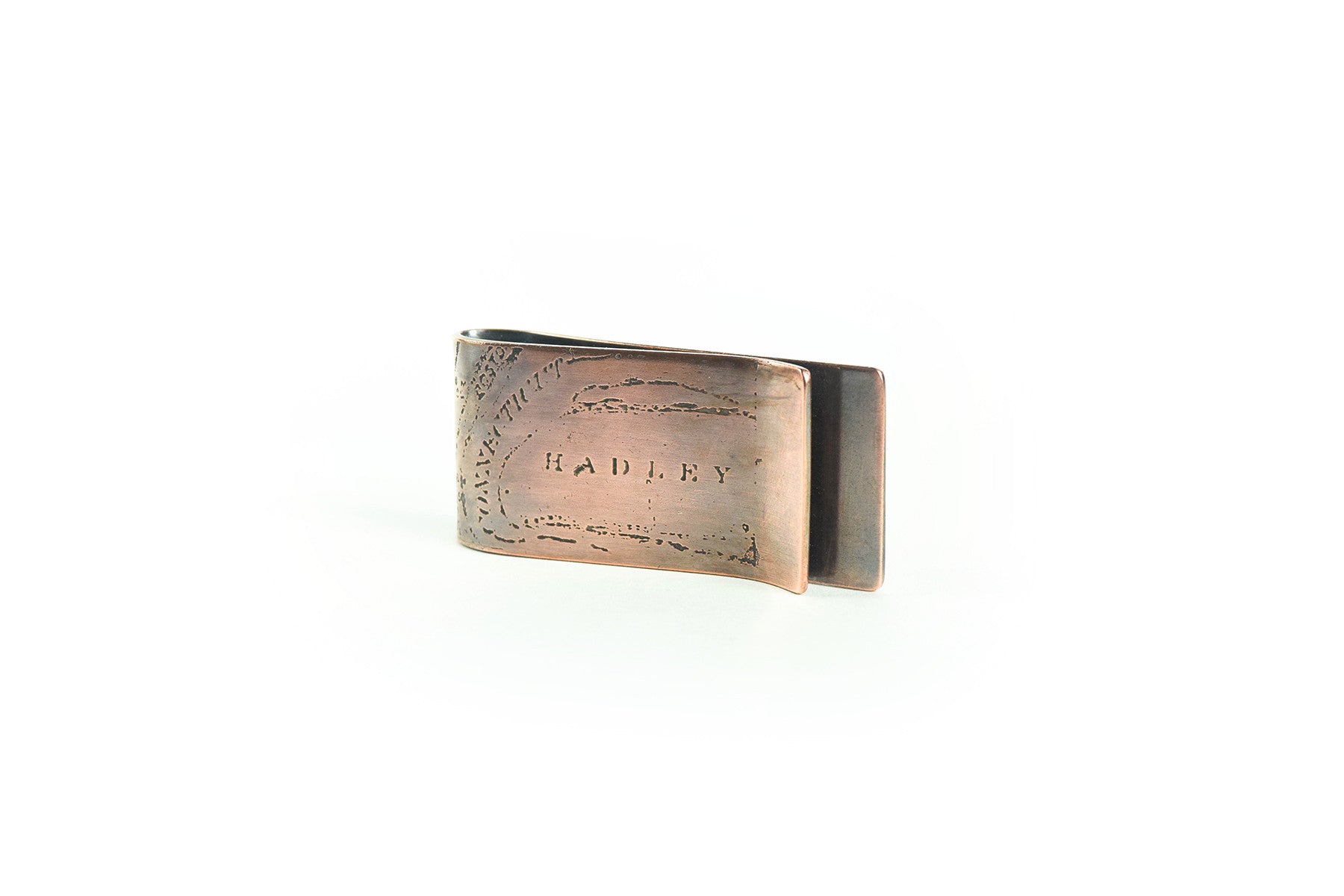 The only money clip you will ever need! Made of pure copper, our money clips are strong enough to hold fat stacks of cash, and your credit cards. Ditch that stuffy old wallet and streamline into the future with this stylish Hadley money clip. Look sharp with this city map while keeping your money safe and secure in your pocket.