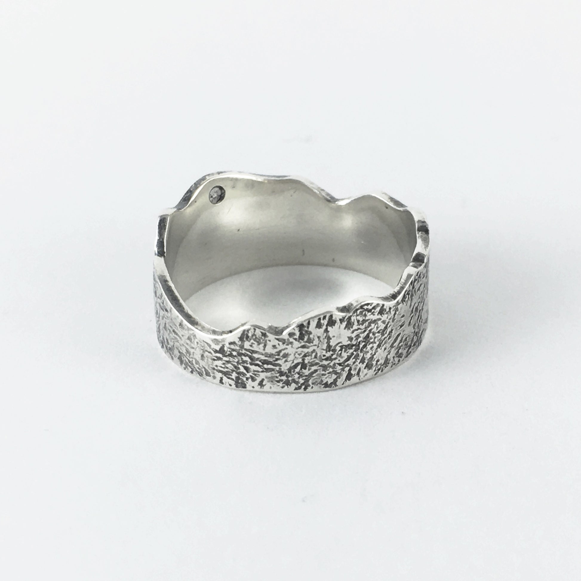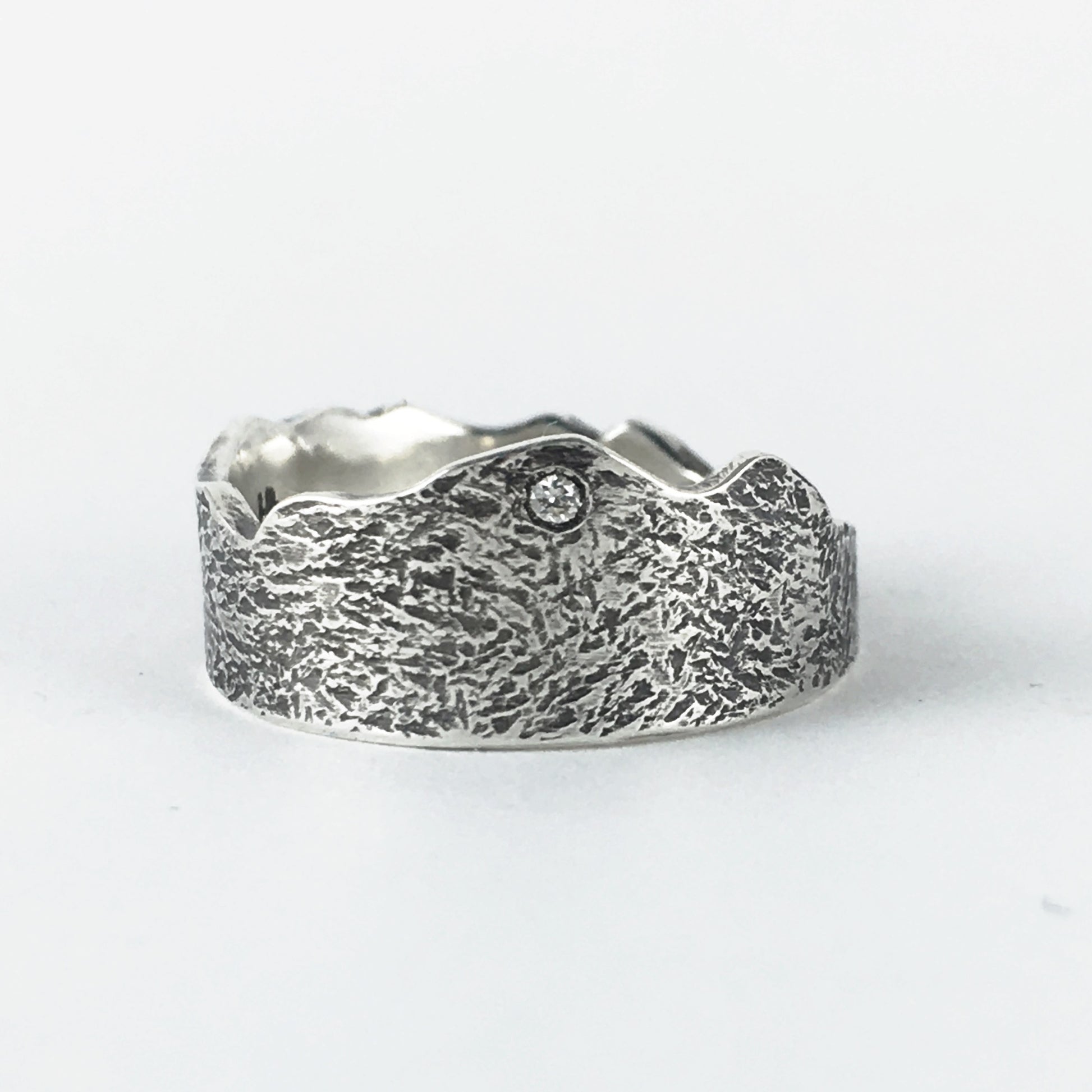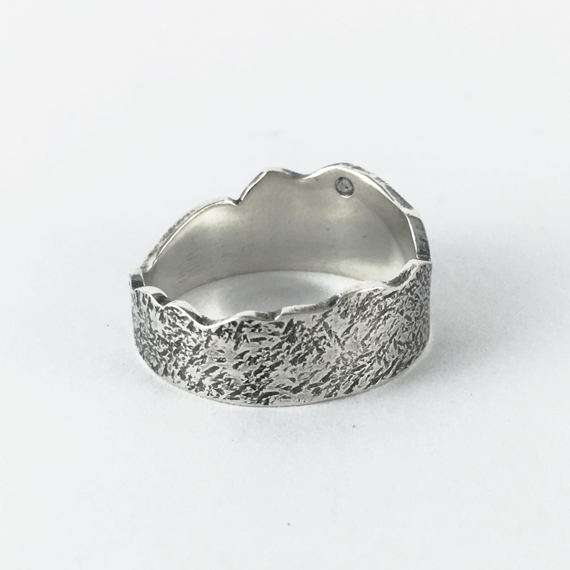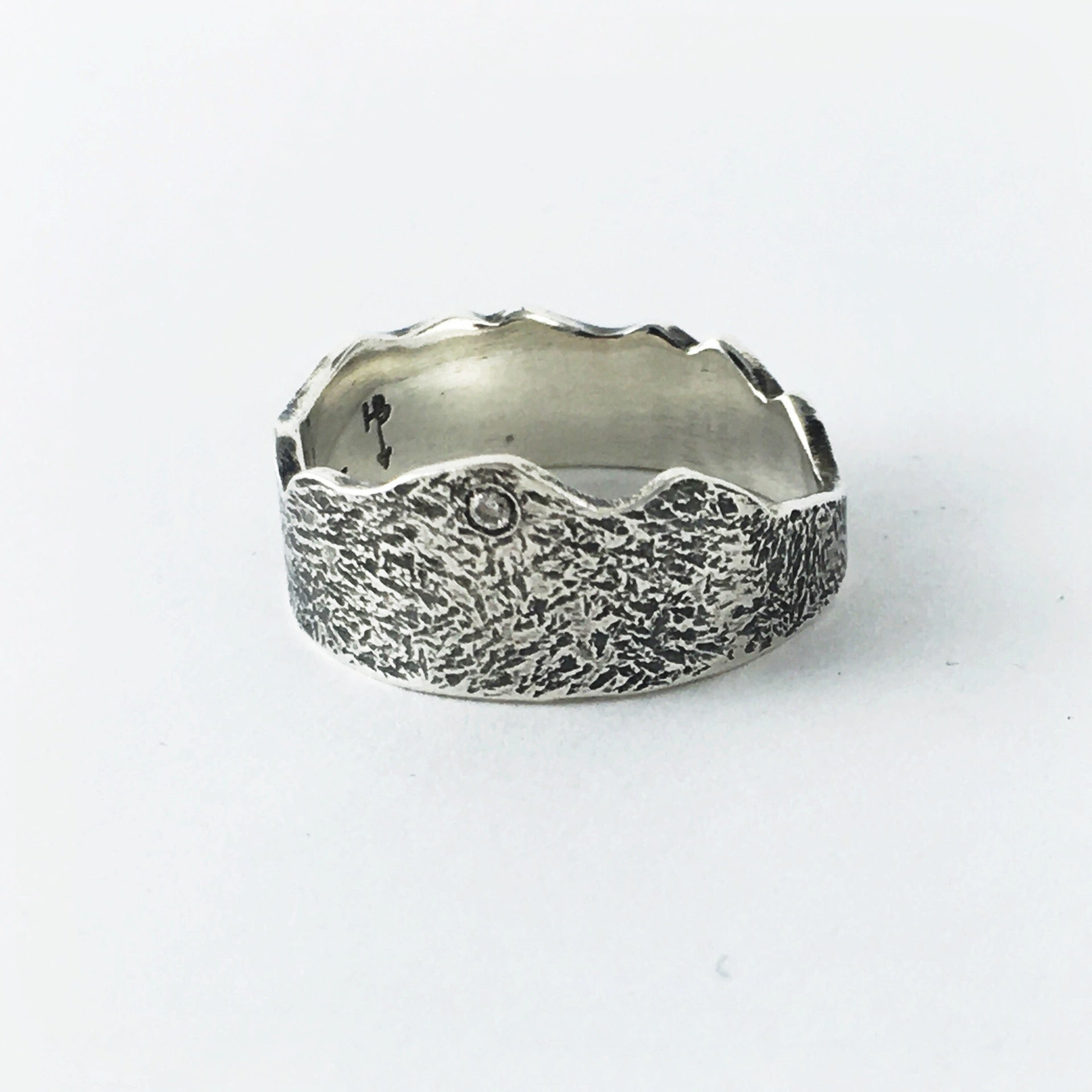 This ring traces that ridgeline, which defines a boundary of this special place we call home. In the spirit of the hundreds of runners who compete in the Seven Sisters Trail Race every year, and the more measured hikers who trek through the woods to arrive at the stunning vistas from the top, we have crafted this piece in celebration of the magic in our unique landscape.