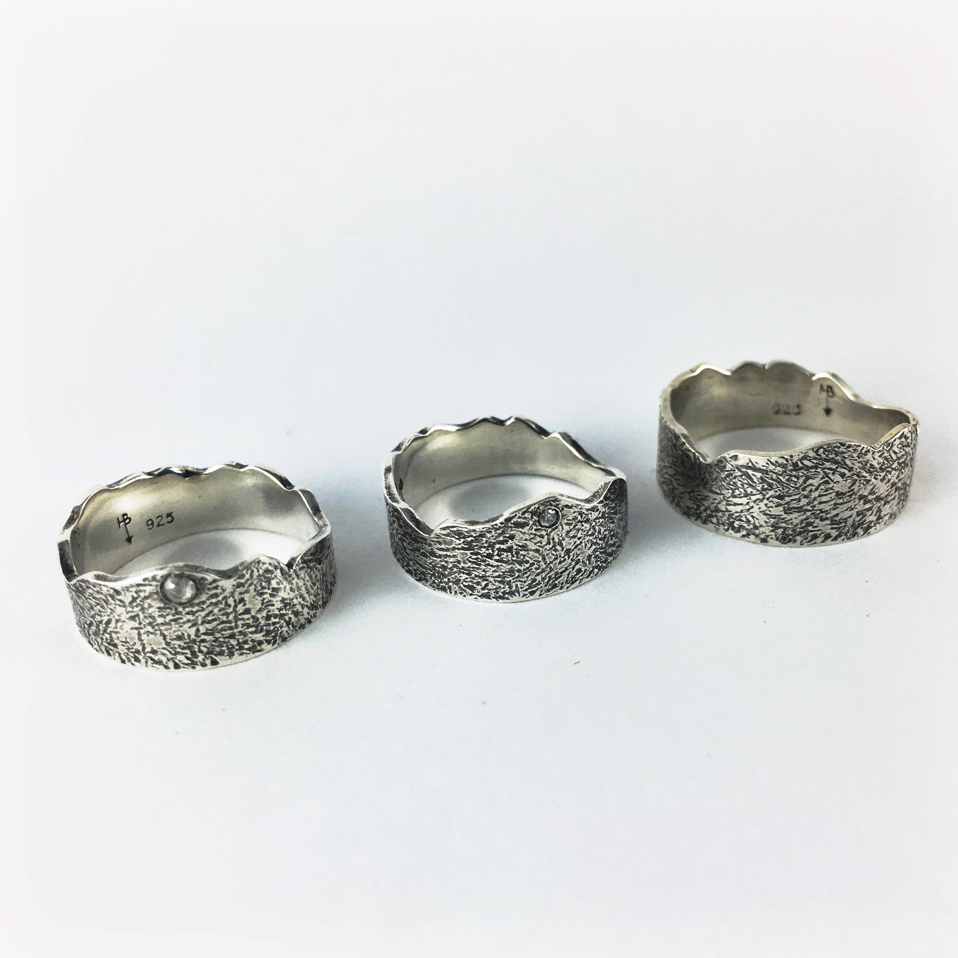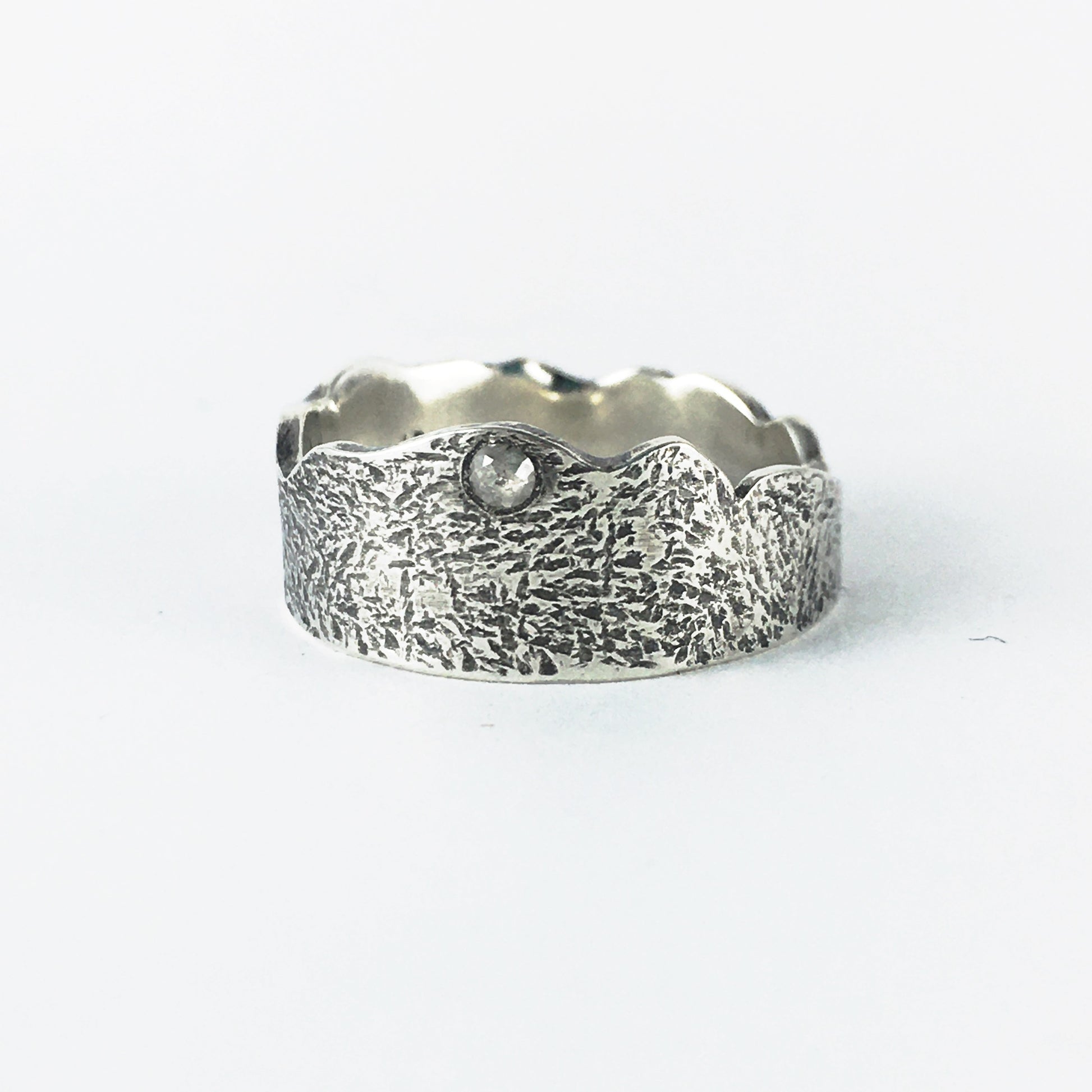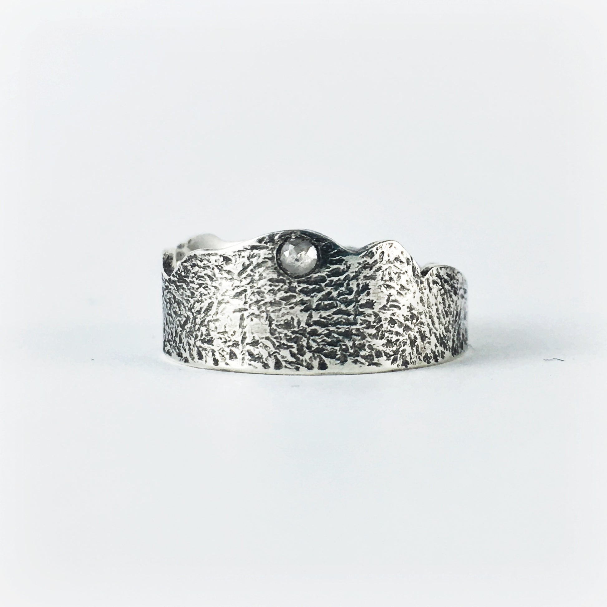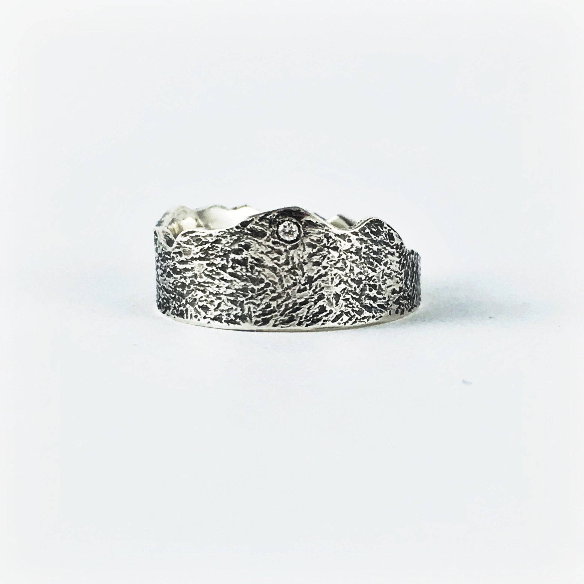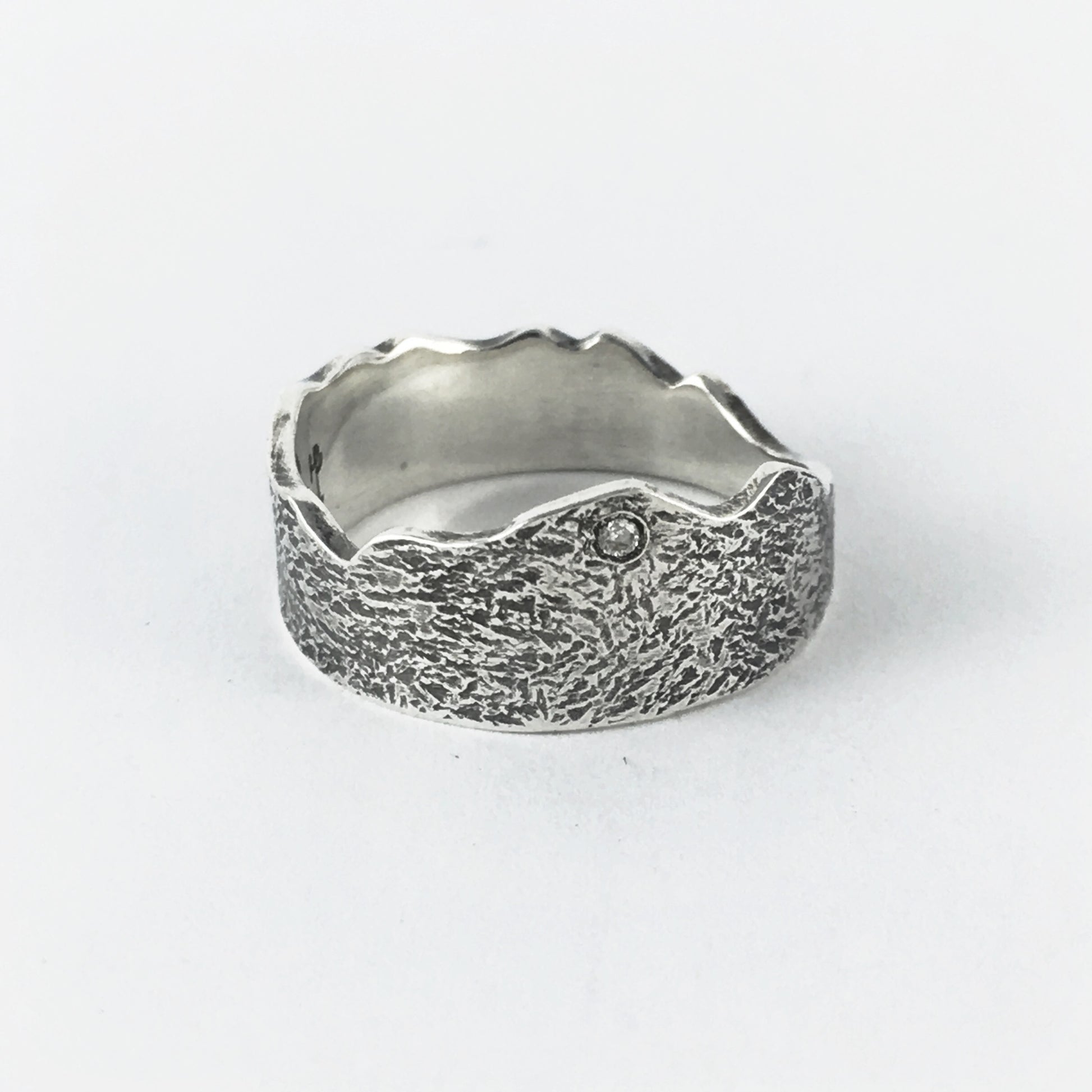 This ring traces that ridgeline, which defines a boundary of this special place we call home. In the spirit of the hundreds of runners who compete in the Seven Sisters Trail Race every year, and the more measured hikers who trek through the woods to arrive at the stunning vistas from the top, we have crafted this piece in celebration of the magic in our unique landscape.