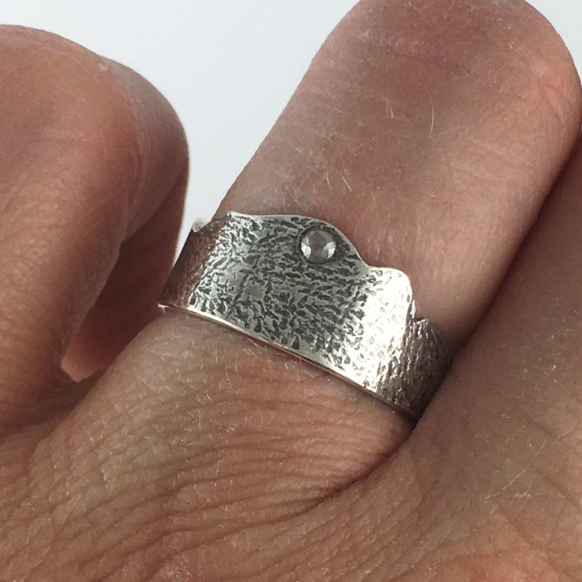 As a part of our Landscapes Collection, this ring is available stock in sterling silver, with or without a diamond flush set at the location of the famous Summit House, from which you can observe bald eagles soaring over the river, or shoppers in downtown Northampton!