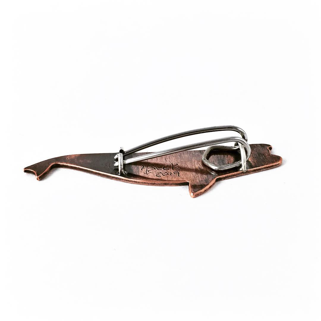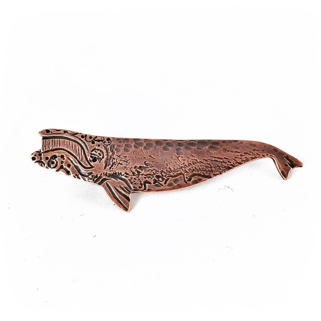 Commissioned by a marine biologist who works with the majestic and critically endangered North Atlantic Right Whale, this copper brooch was cut and textured at my studio bench. The hand-fabricated sterling and steel closure keeps this special creature secured in place.