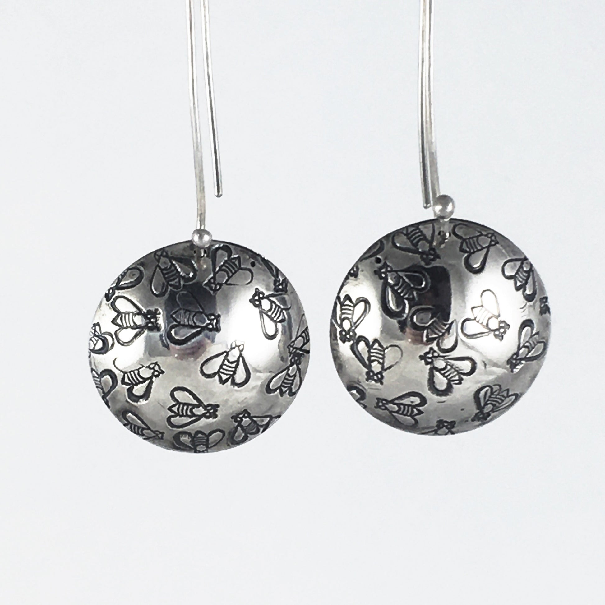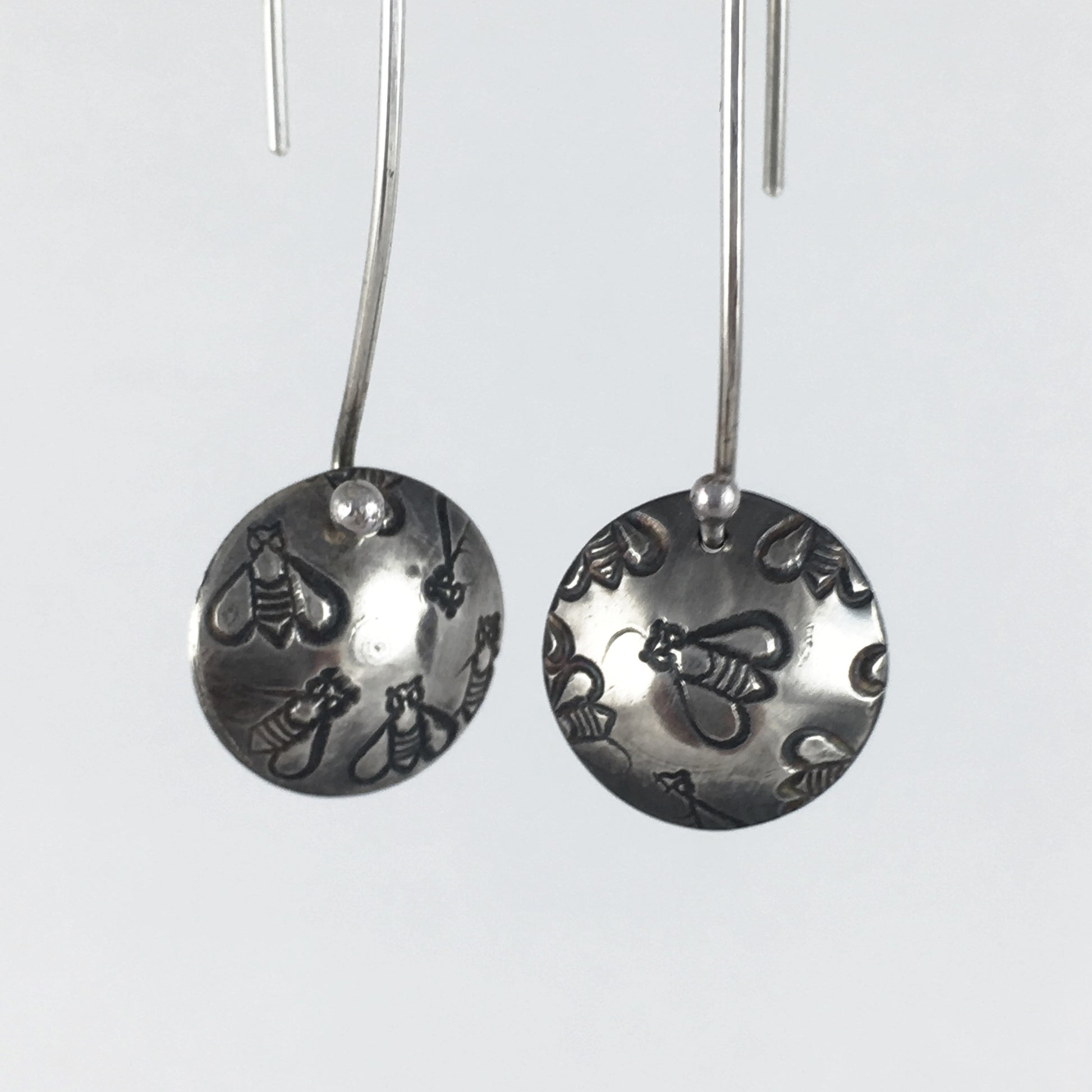 Silver Bee Drop Earrings