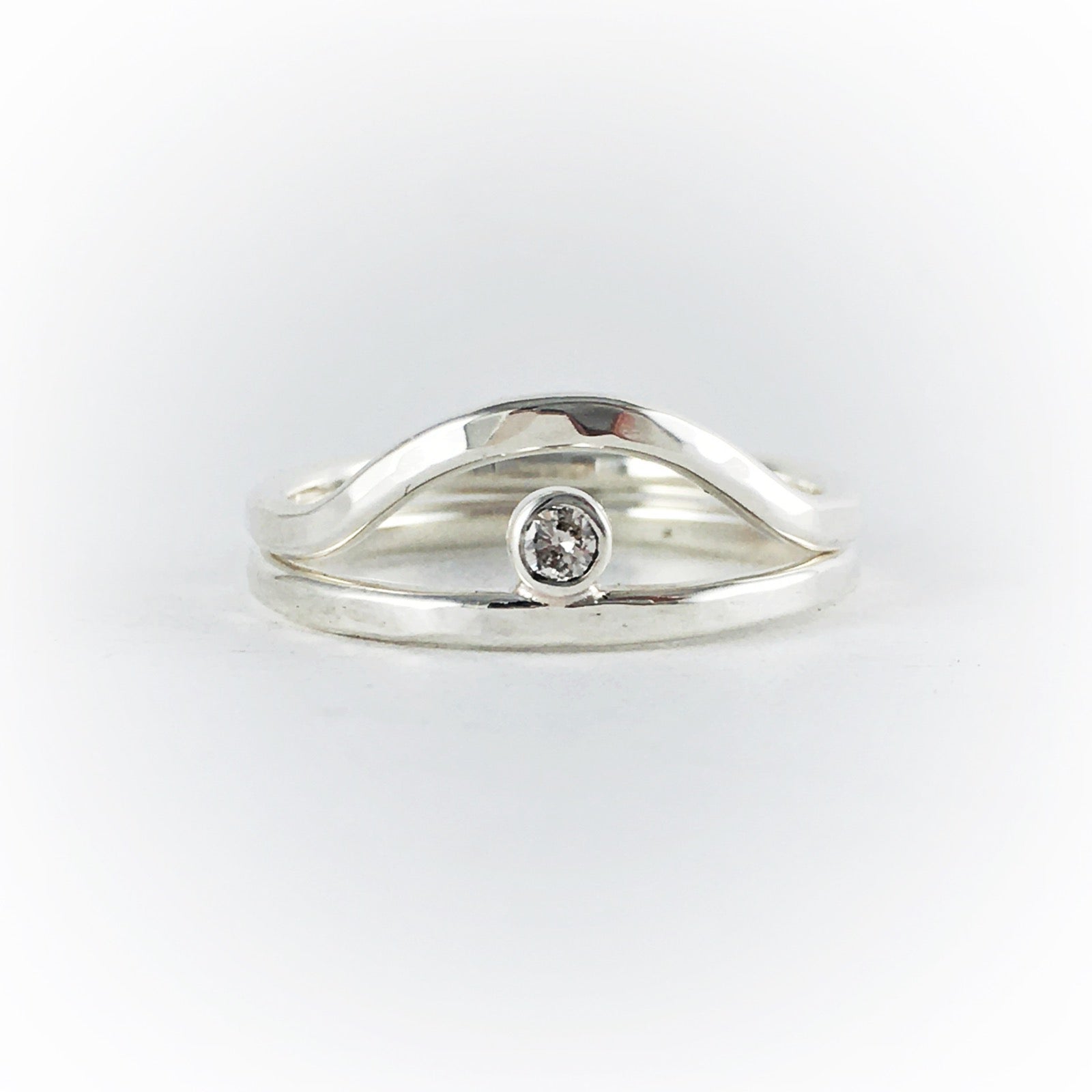 Stacking Eye Rings Set: sterling with salt and pepper diamond