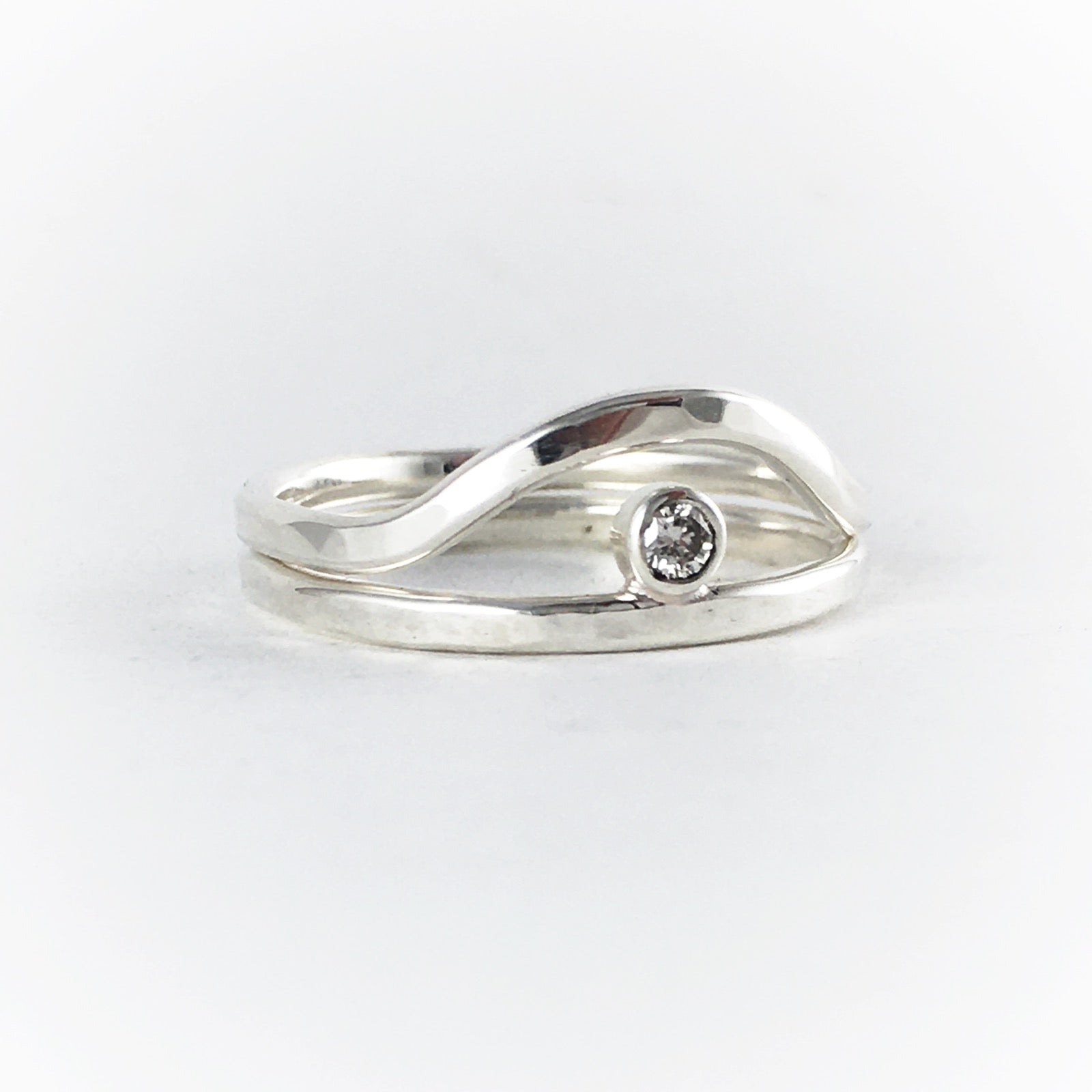 This set is an excellent alternative to more elaborate bridal jewelry, and is great for your special love who wants something durable and low-profile to suit their active lifestyle. Created with sustainably sourced silver and diamonds, these rings are heirloom quality everyday wear you can feel good about.