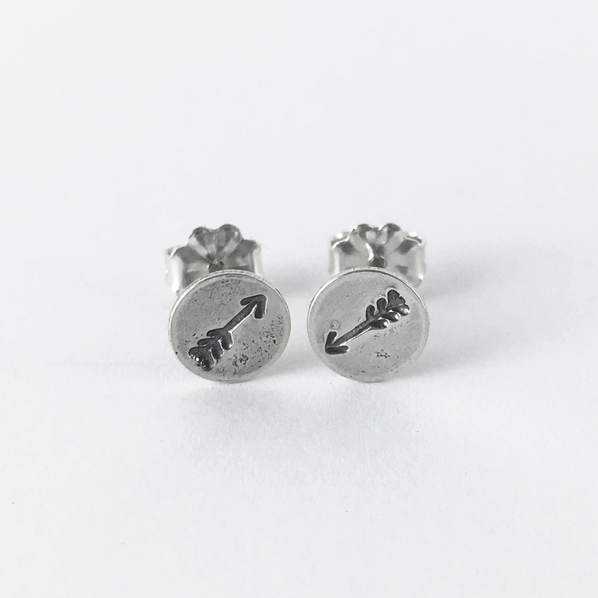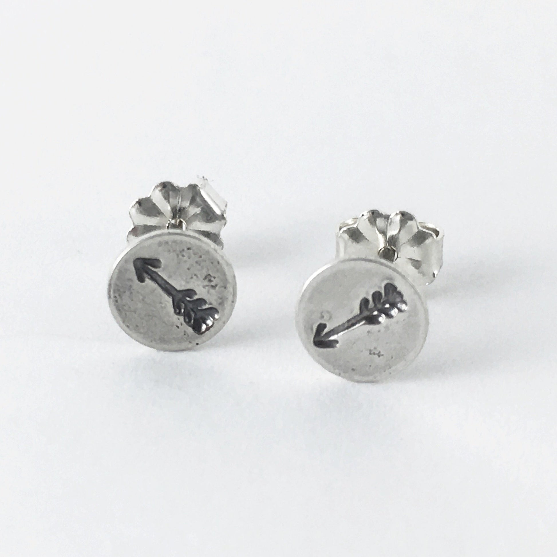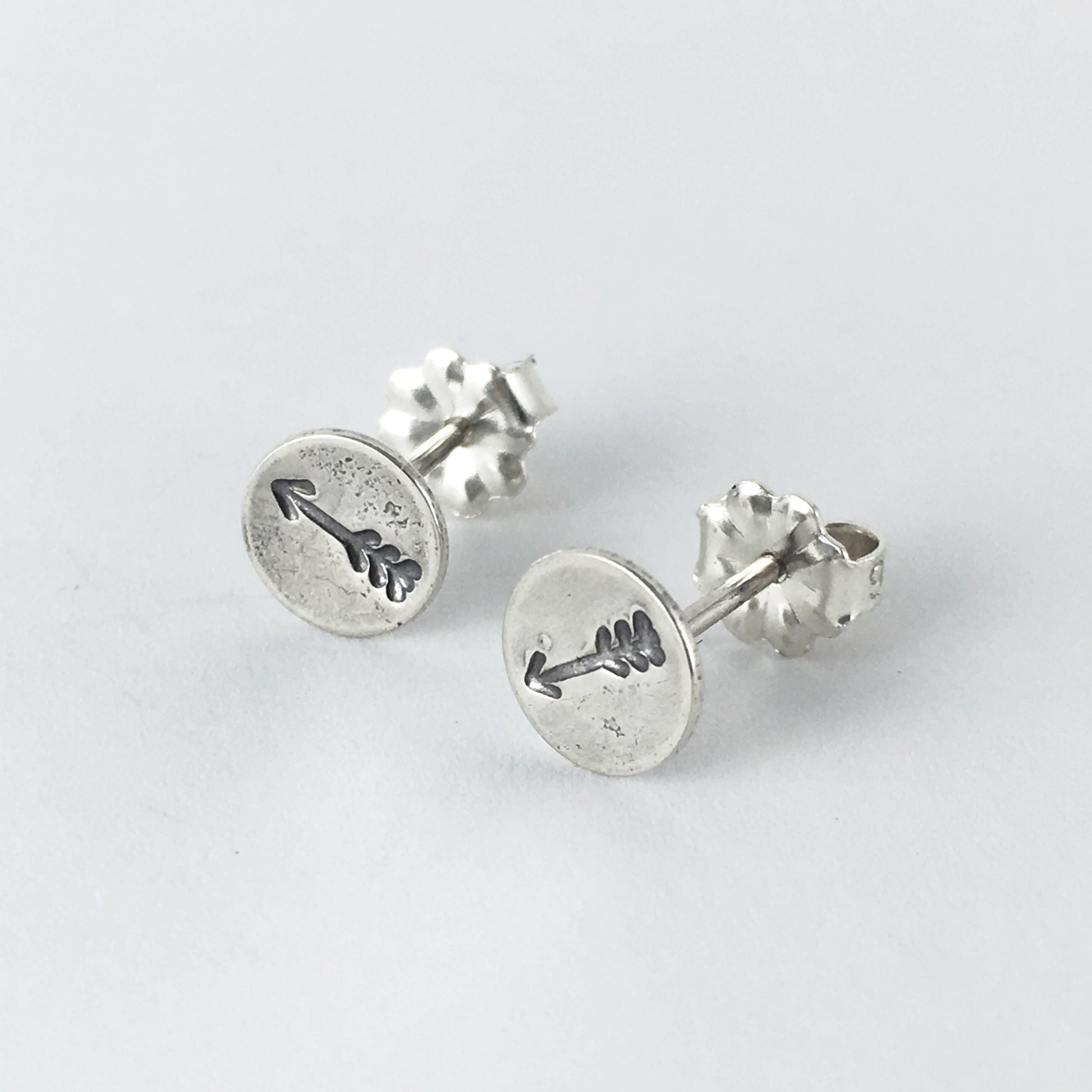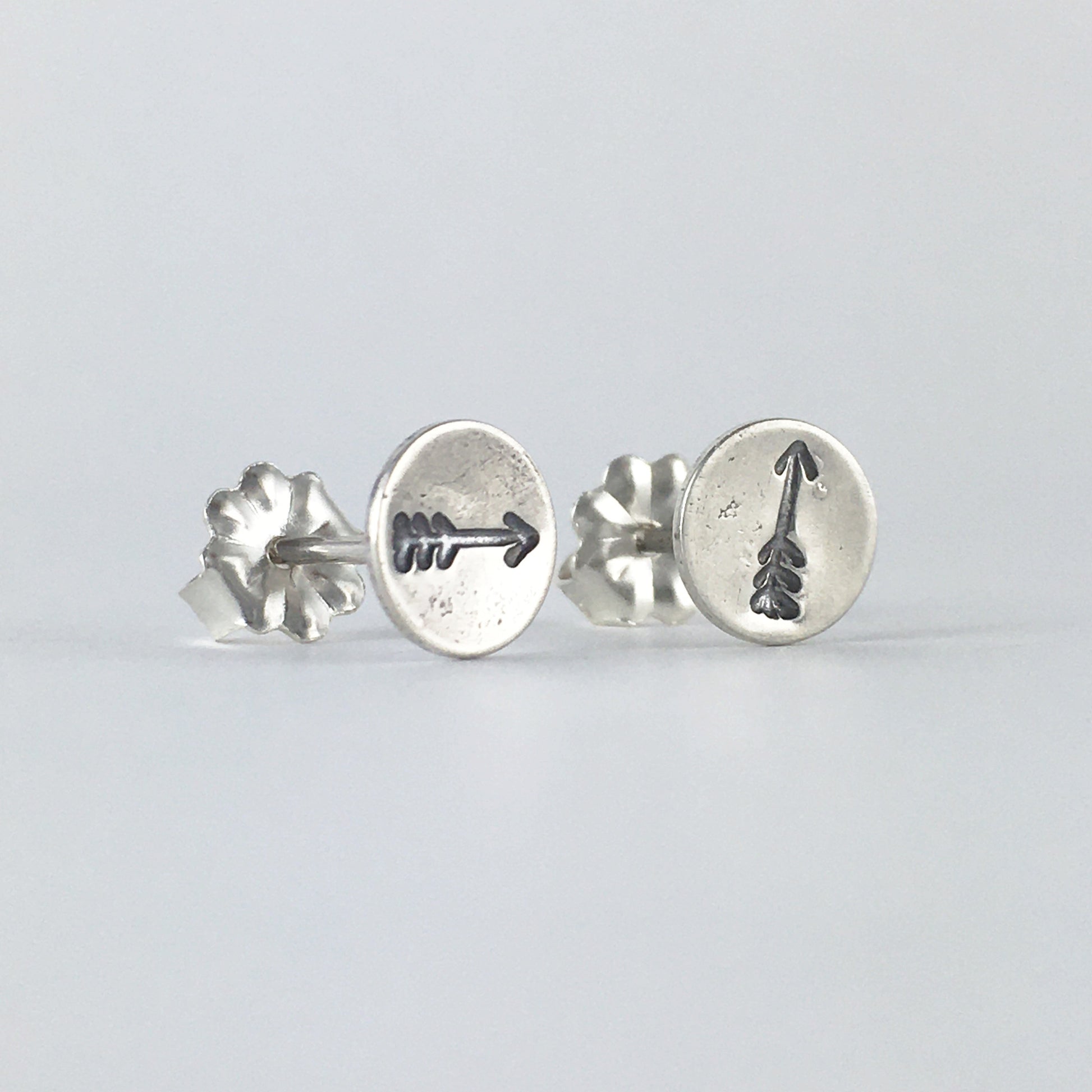 These arrow studs will point the way and will be an everyday favorite. They're sterling silver and hand stamped with my arrow tool. They're antiqued and hand polished one by one! Aim at the center and your arrow is sure to land where you point it.